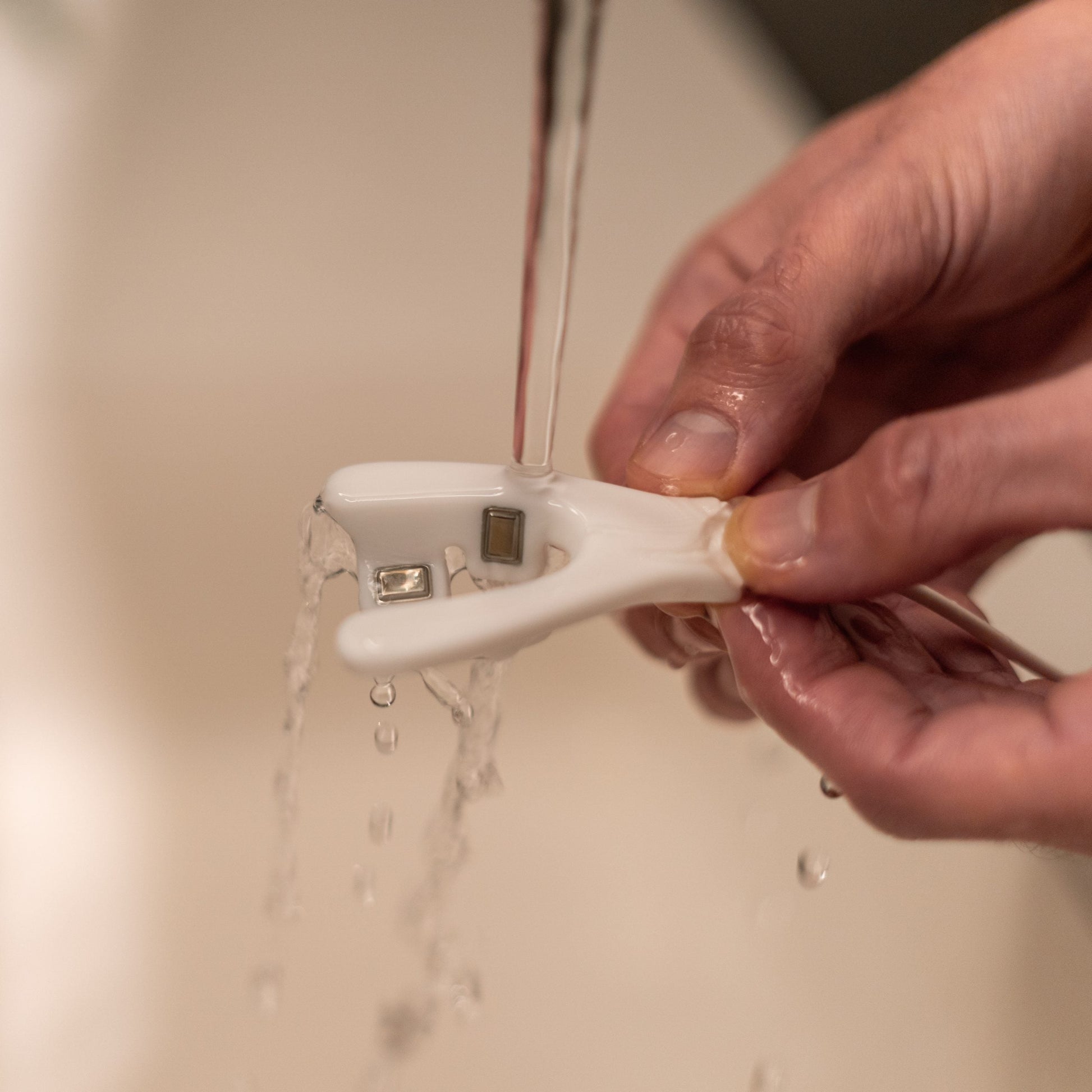 A: GenioFlex dapat digunakan kapan saja saat terjaga. Cukup letakkan alat mulut di bawah lidah Anda, nyalakan GenioFlex, sesuaikan mode dan intensitasnya, dan alat akan mengalirkan arus mikro untuk melatih otot Anda.